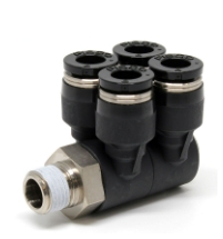 節(jié)省空間:四聯(lián)歧管接頭的設(shè)計較為緊湊,相比多個單獨的接頭,能夠節(jié)省安裝空間,使氣動系統(tǒng)的布局更加簡潔、整齊,尤其適用于空間有限的場合。